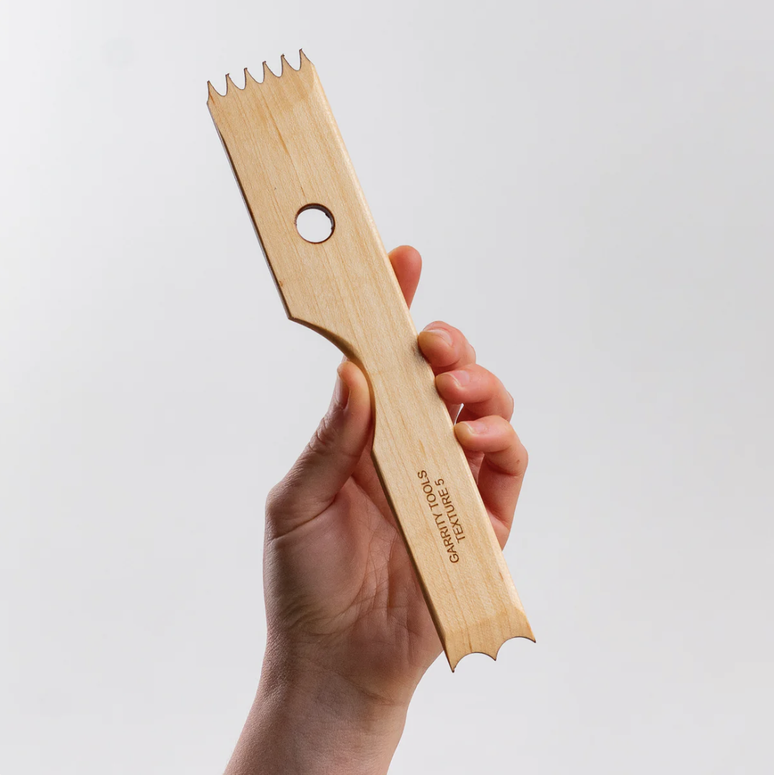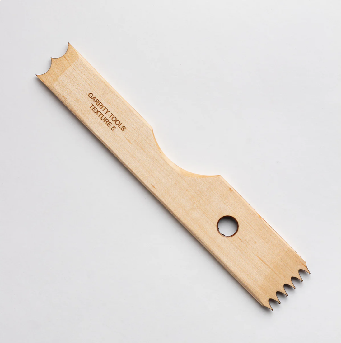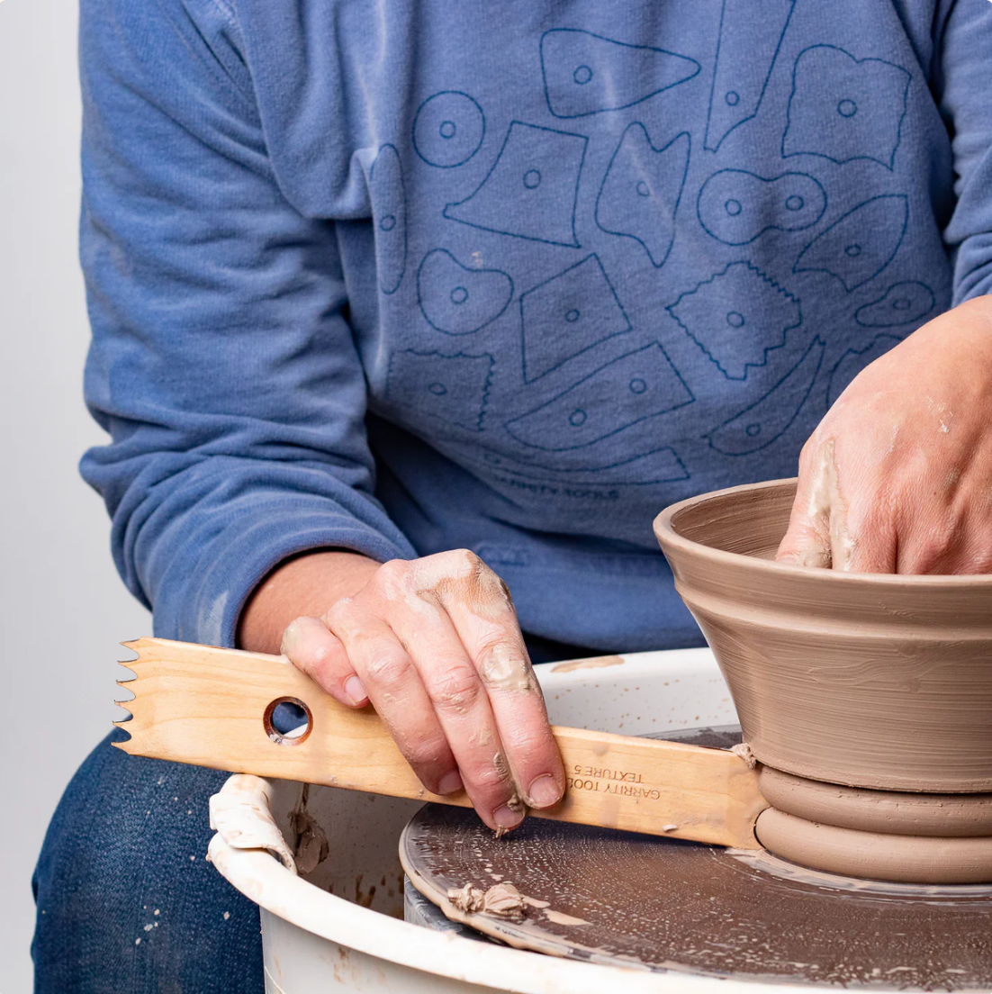The long edges of Texture 5 combined with the textured short ends make this a versatile pottery tool for throwing on the wheel or hand-building. Use the textures for scoring slab, create unique shapes on clay vessels, or go big by using the 9" side of this rib to pull up your walls.