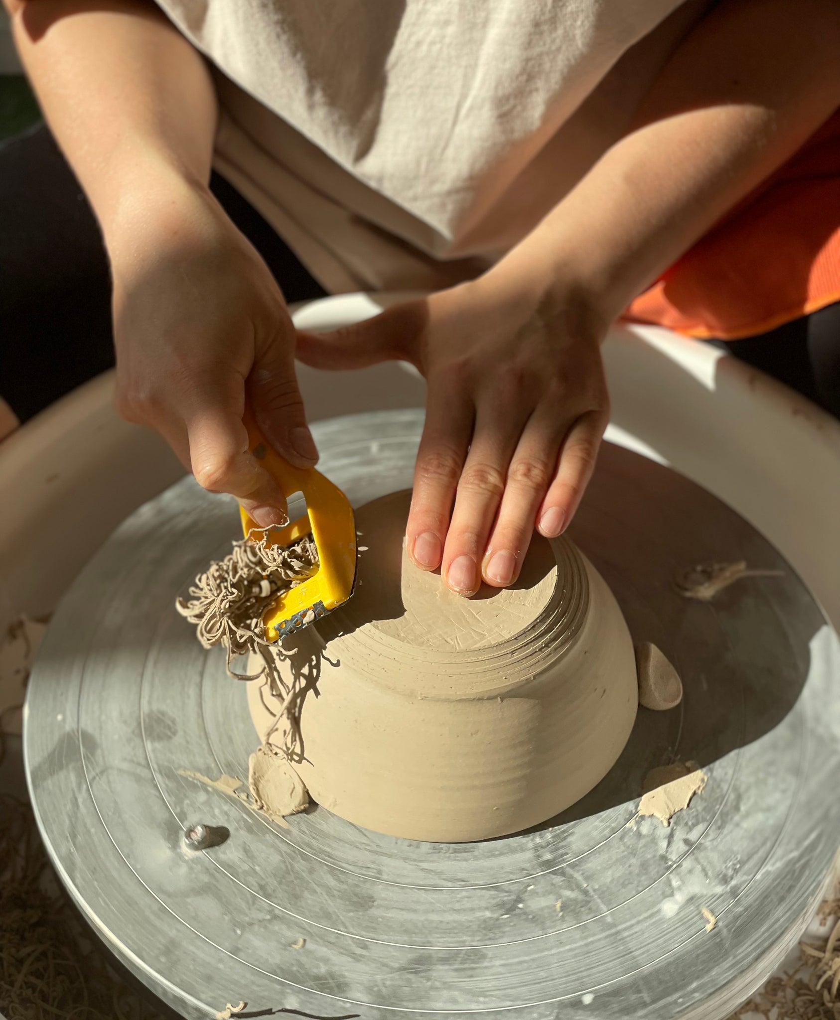 This simple cast iron shaver with sidecut teeth in blade is useful for shaping or carving leather hard clay.